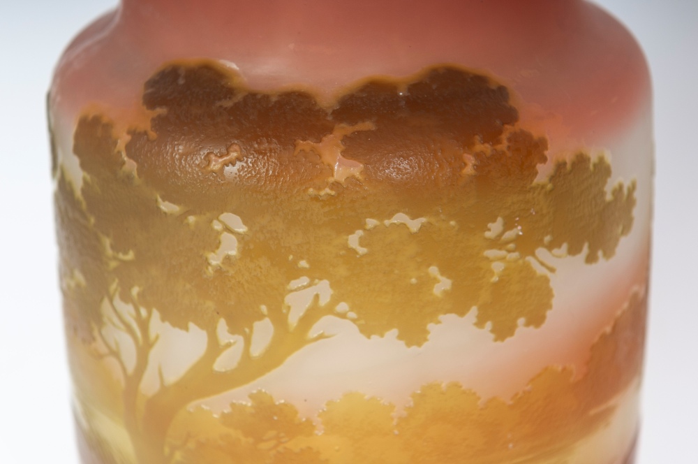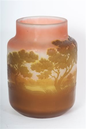 23 x 11,5 x 12 cm con paesaggio a tutto tondo lavorato all'acido, in policromia.