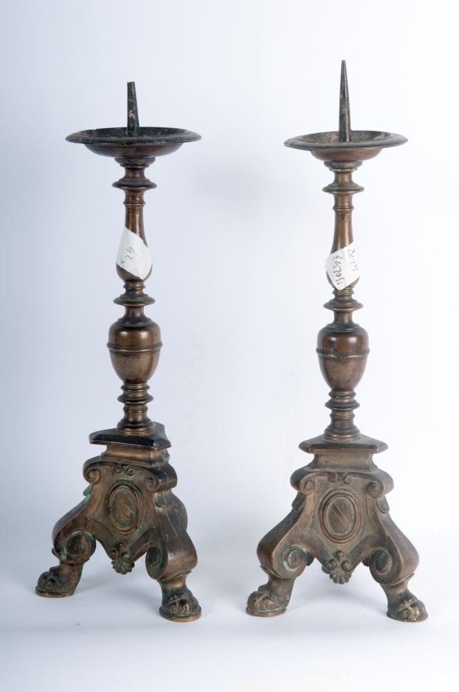 Coppia di candelieri in bronzo inizi XX secolo 36 x 13,5 cm