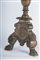 36 x 13,5 cm di gusto seicentesco , base triangolare con piedi ferini, fusto a balaustro con anello centrale.