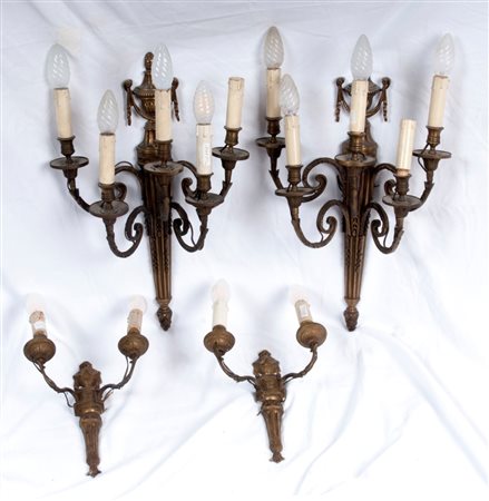 Lotto di quattro appliques in bronzo da parete XX secolo 50 x 32 cm; 28 x 20 cm