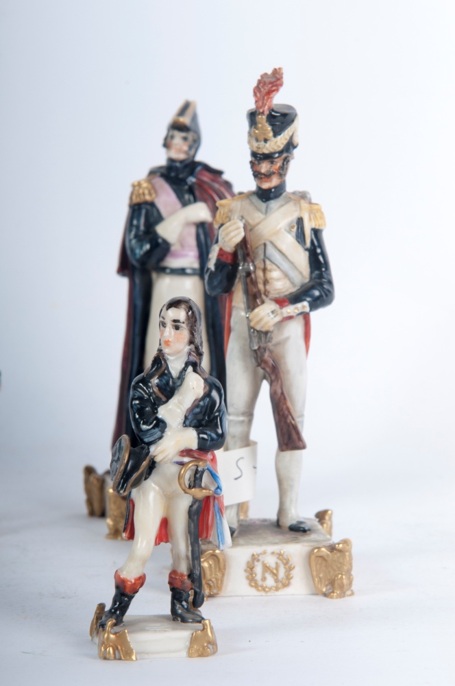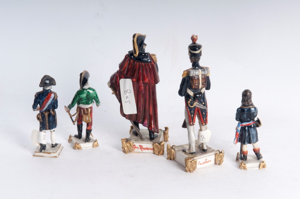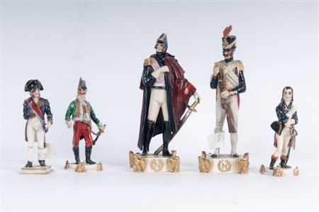 Lotto di cinque porcellane policrome figure militari metà XX secolo