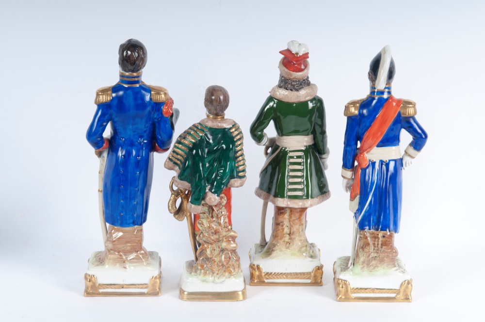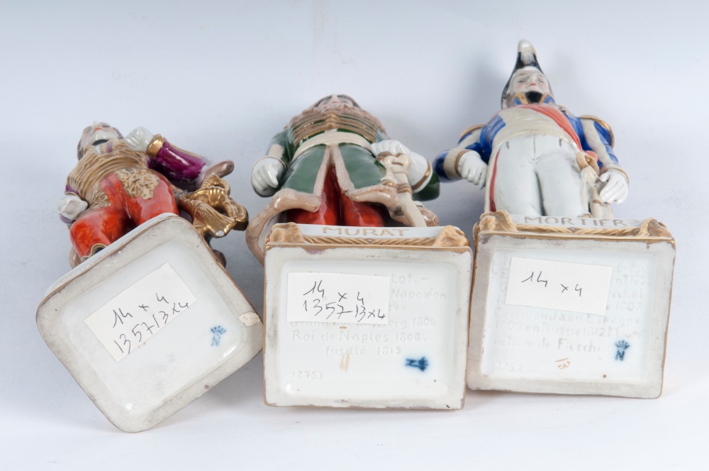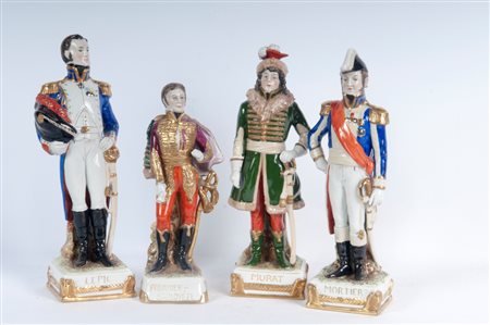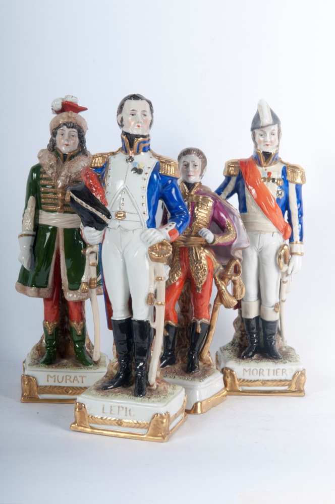 24,5 x 7,5 x 6,5 cm; 21 x 6,5 x 6,5 cm figure militari, formatura a colaggio. Manifattura "N" coronata sotto smalto.