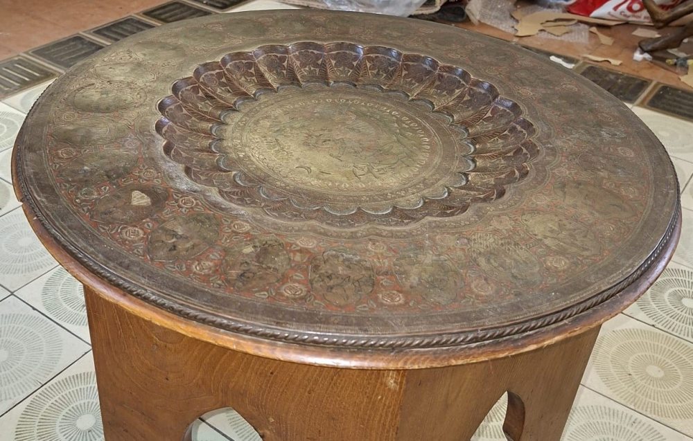 Tavolo da tè con piano in bronzo inizio XX secolo