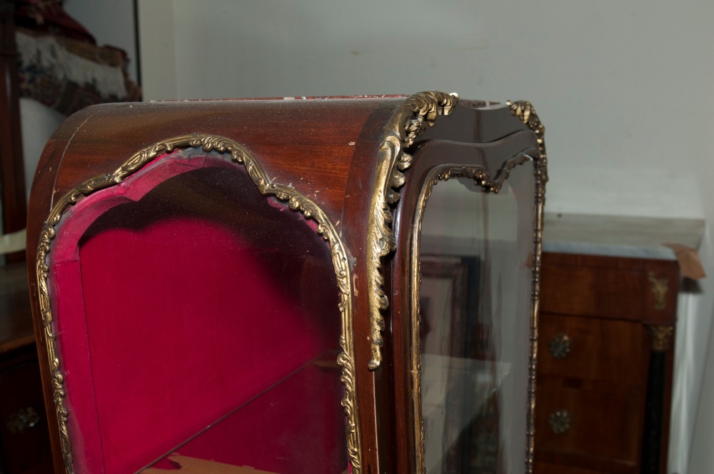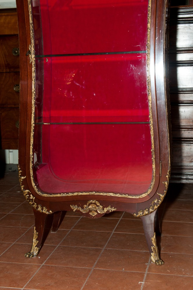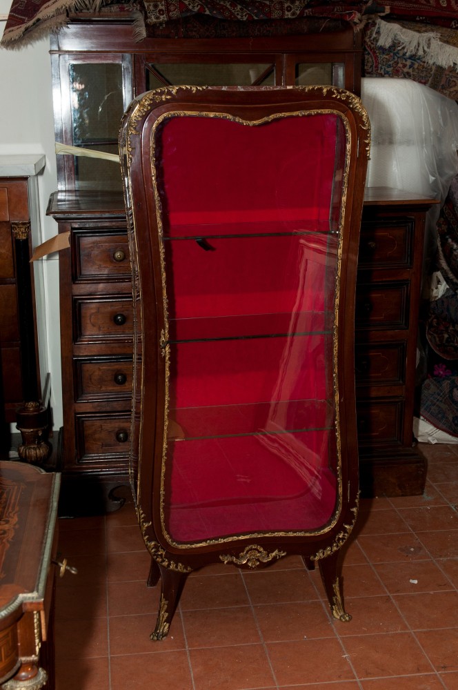 Vetrina ad un sportello di forma rettangolare a tre ripiani in vetro prima metà XX secolo