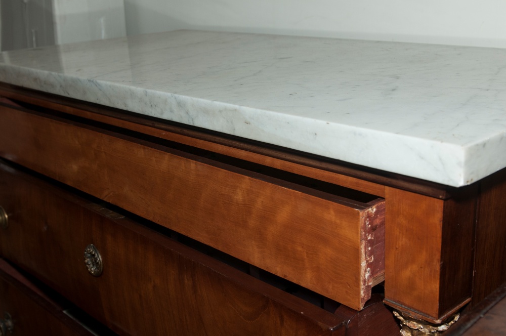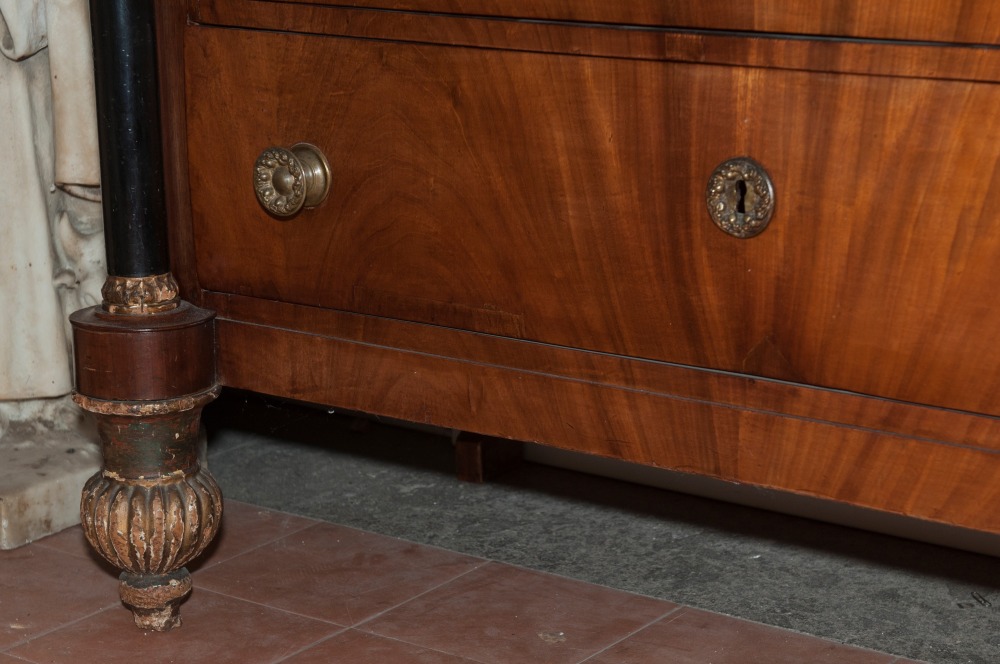 Cassettone impiallacciato di forma rettangolare a quattro cassetti Toscana, prima meta' XIX secolo