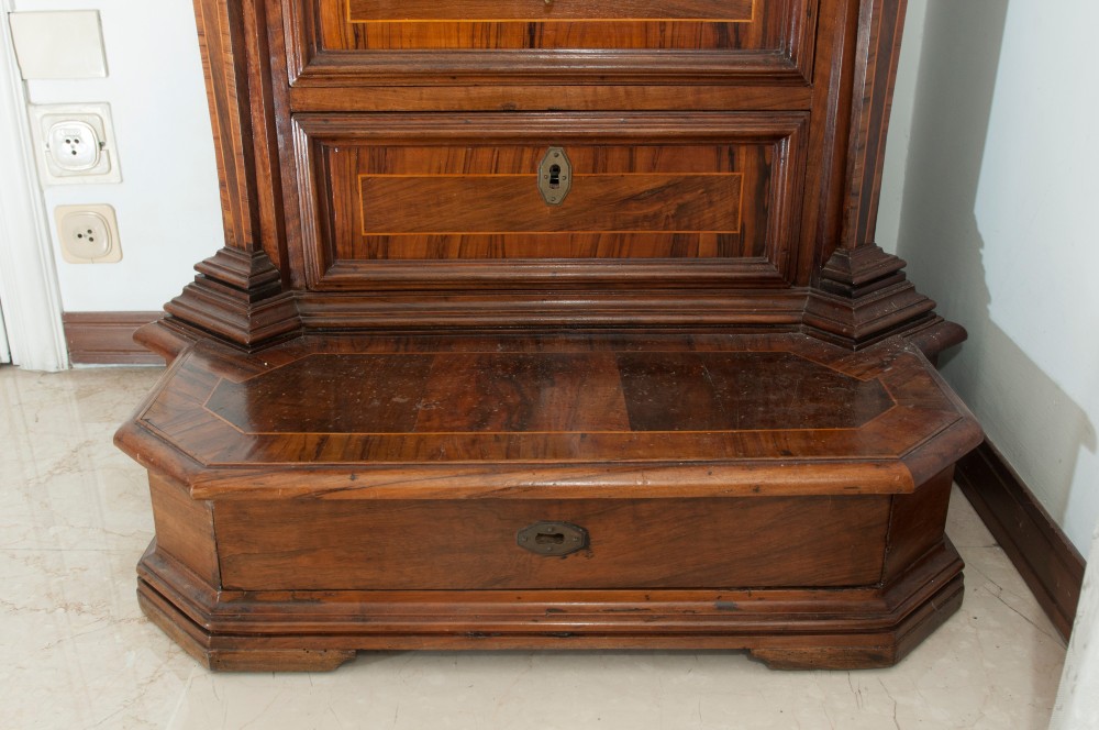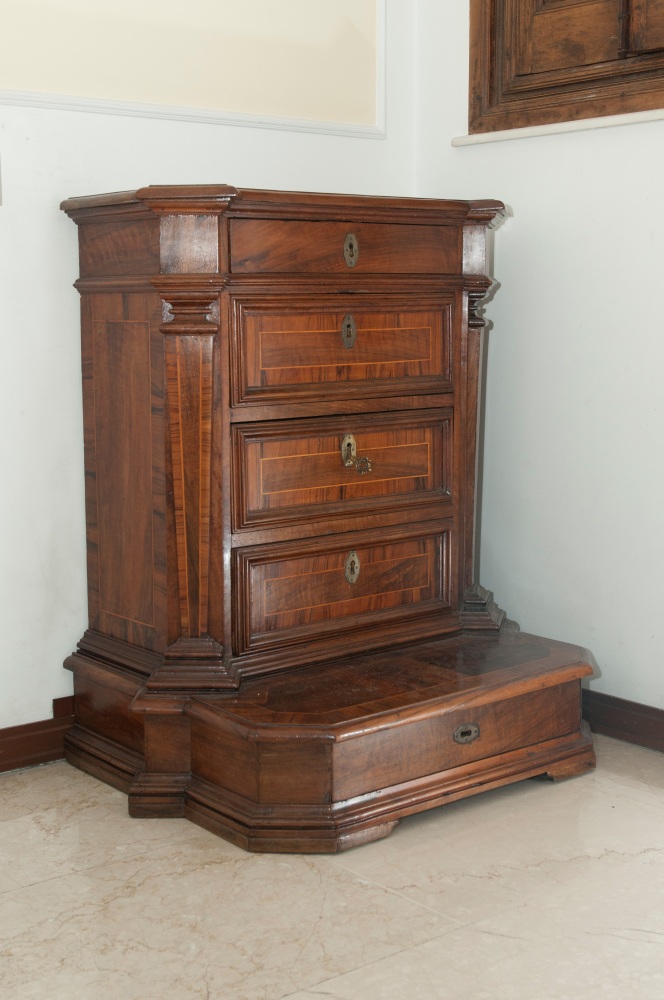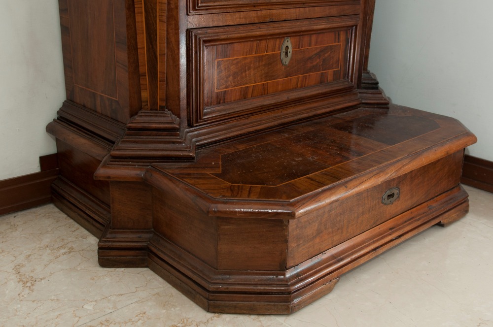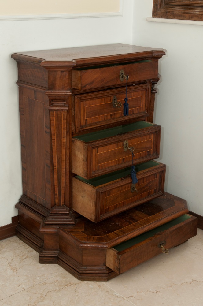 Inginocchiatoio a cinque cassetti in legno di noce Roma, XVIII secolo
