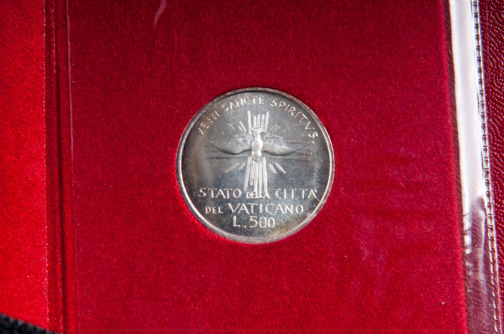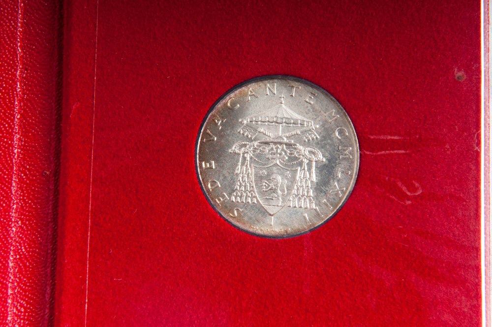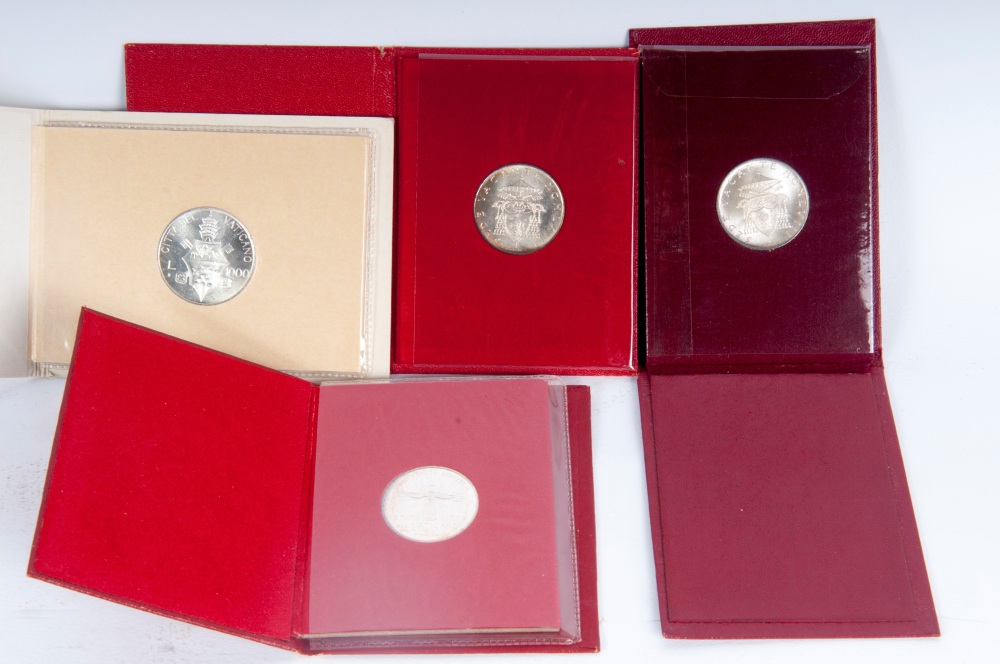 500 lire in argento sede vacante 1958; 500 lire in argento sede vacante 1963; 500 lire in argento sede vacante 1978; lire 1000 in argento pontificato Giovanni Paolo I 26 agosto 28 settembre 1978 in astuccio originale