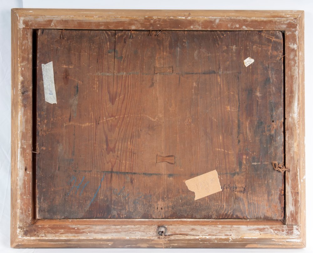 43 x 56 cm ritoccata a mano incollata su tavola in cornice.
