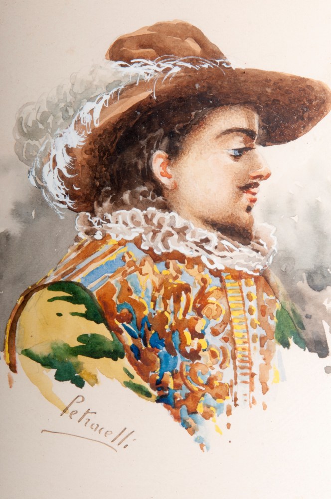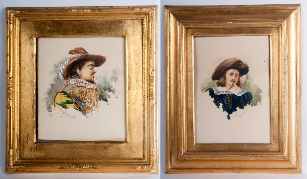 Lotto di due busti virili prima metà XX secolo acquarelli su carta 24,5 x 20,5 cm ; 35 x 24 cm