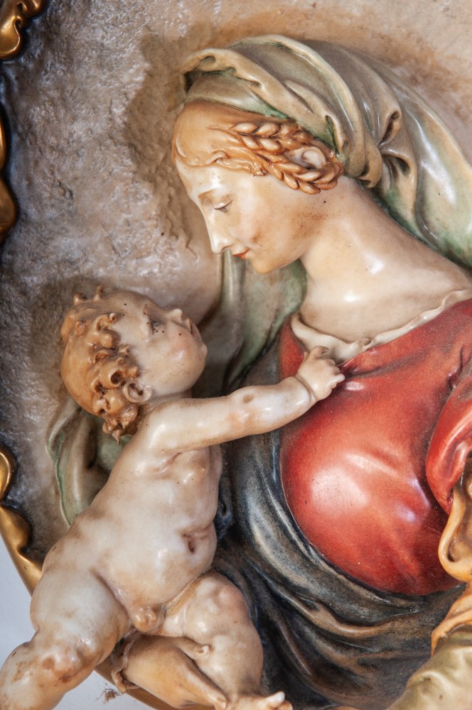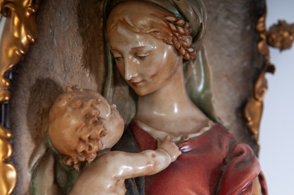 Madonna con Bambino in porcellana policroma anni '60 32 x 20 x 3 cm