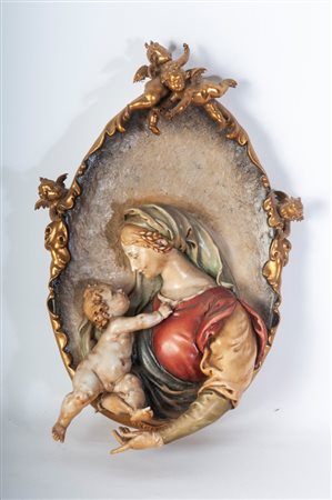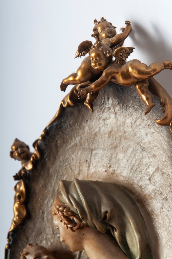 32 x 20 x 3 cm entro medaglione circondato da putti. Manifattura Tiche Milano modellata da Cappé.