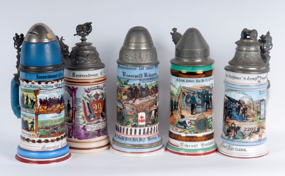 Boccale del riservista, lotto di cinque primo quarto del XX secolo 30 x 11 cm