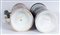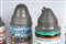 30 x 11 cm in ceramica policroma con coperchio in peltro dei quali due sormontati con cannone e tre con ogiva di proiettile. Decoro con iscrizione del reparto di appartenenza e scene militari.