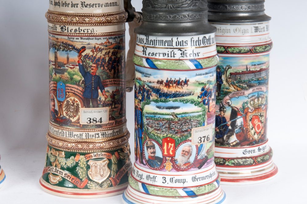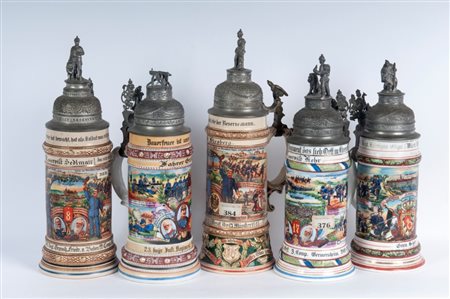 Boccale del riservista, lotto di cinque primo quarto del XX secolo 34 x 11 cm; 30 x 11 cm