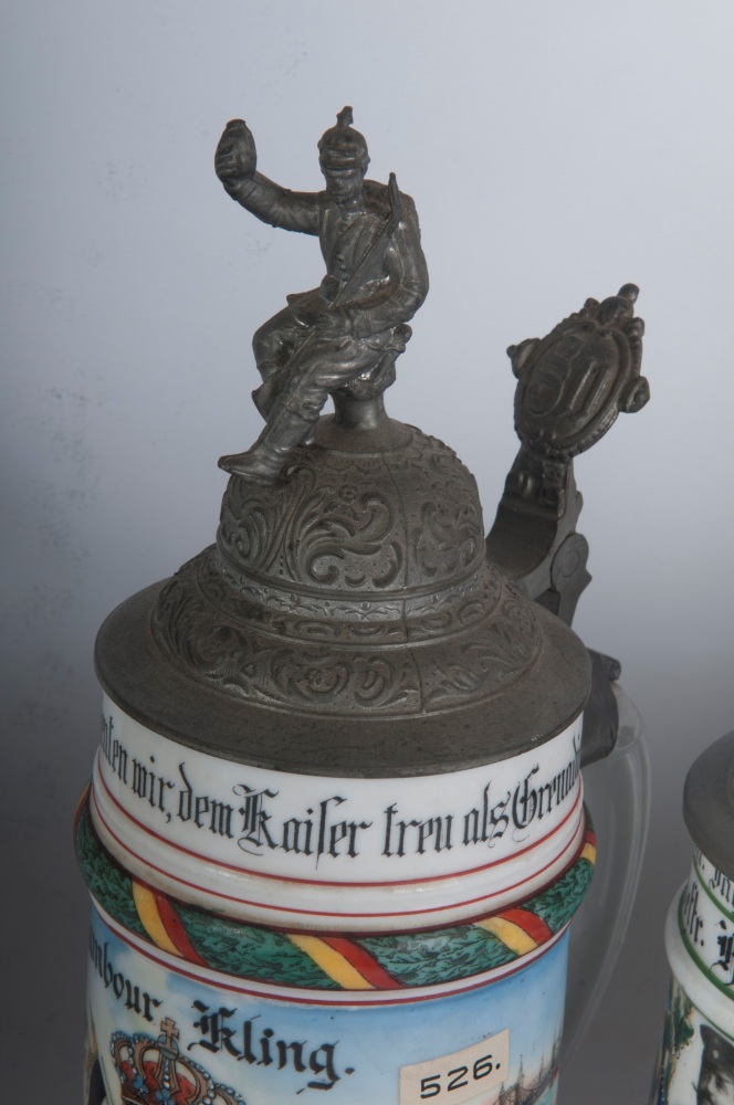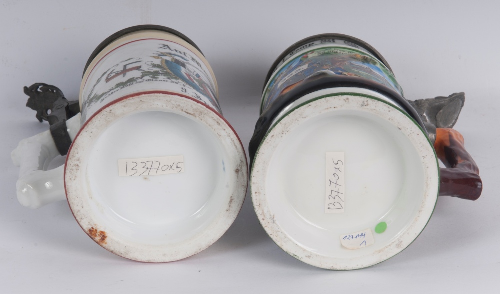 Boccale del riservista, lotto di cinque primo quarto del XX secolo 20 x 10 cm; 28 x 10 cm