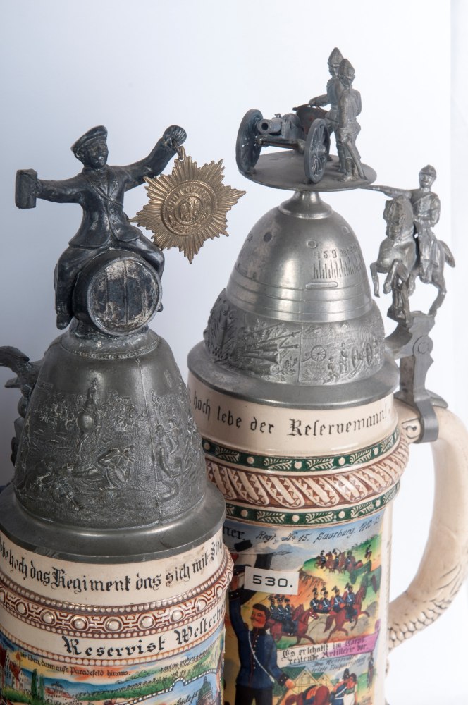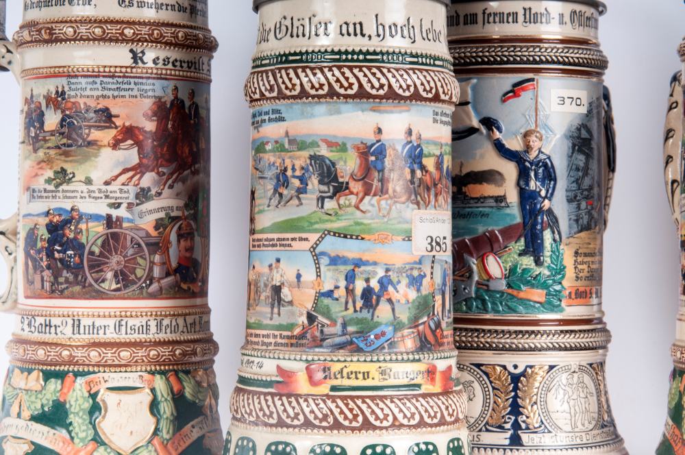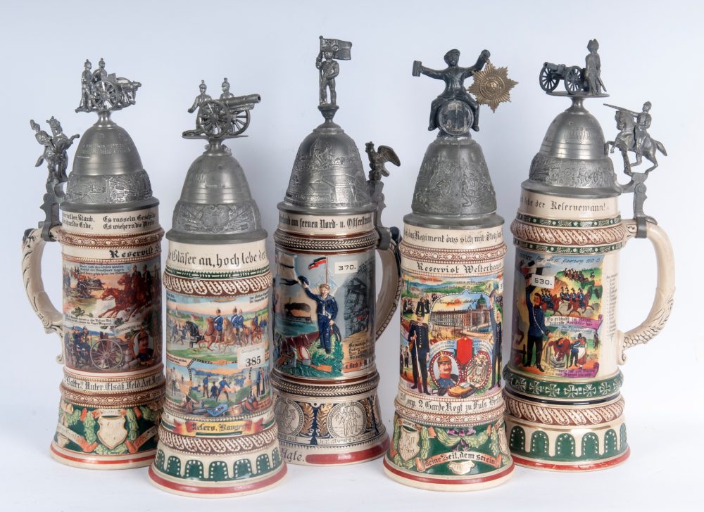 Boccale del riservista, lotto di cinque primo quarto del XX secolo 36,5 x 12 cm; 33 x 11,5 cm circa