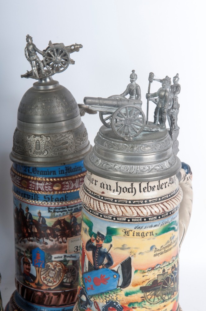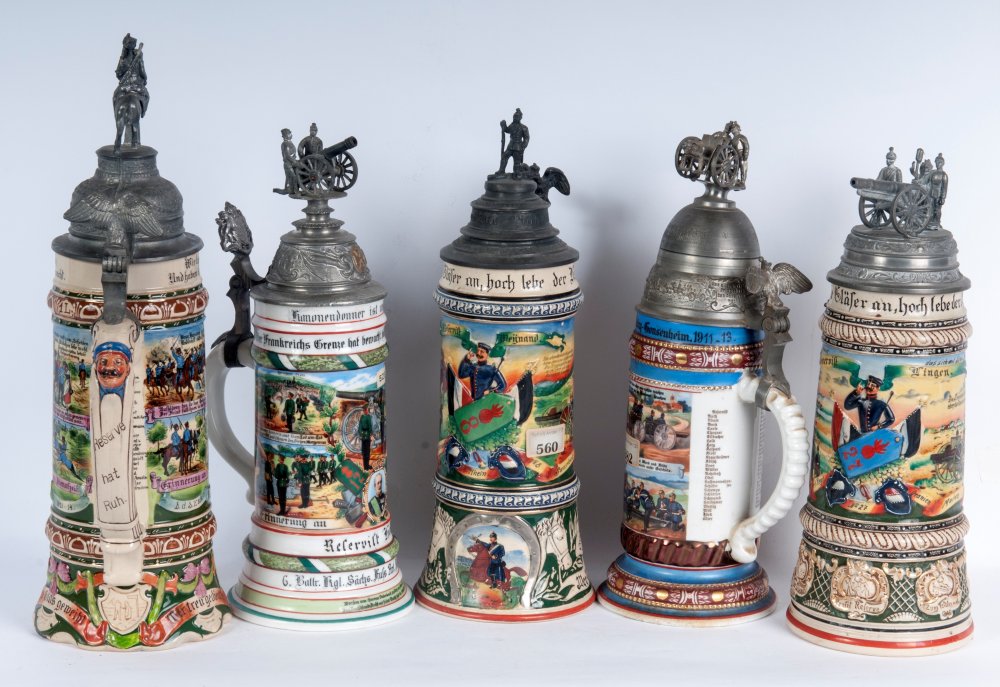 Boccale del riservista, lotto di cinque primo quarto del XX secolo 37 x 12 cm; 30 x 11 cm circa