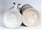 37 x 12 cm; 30 x 11 cm circa in ceramica policroma con coperchio in peltro dei quali tre sormontati da artiglierie, uno da cavaliere e uno da fante.