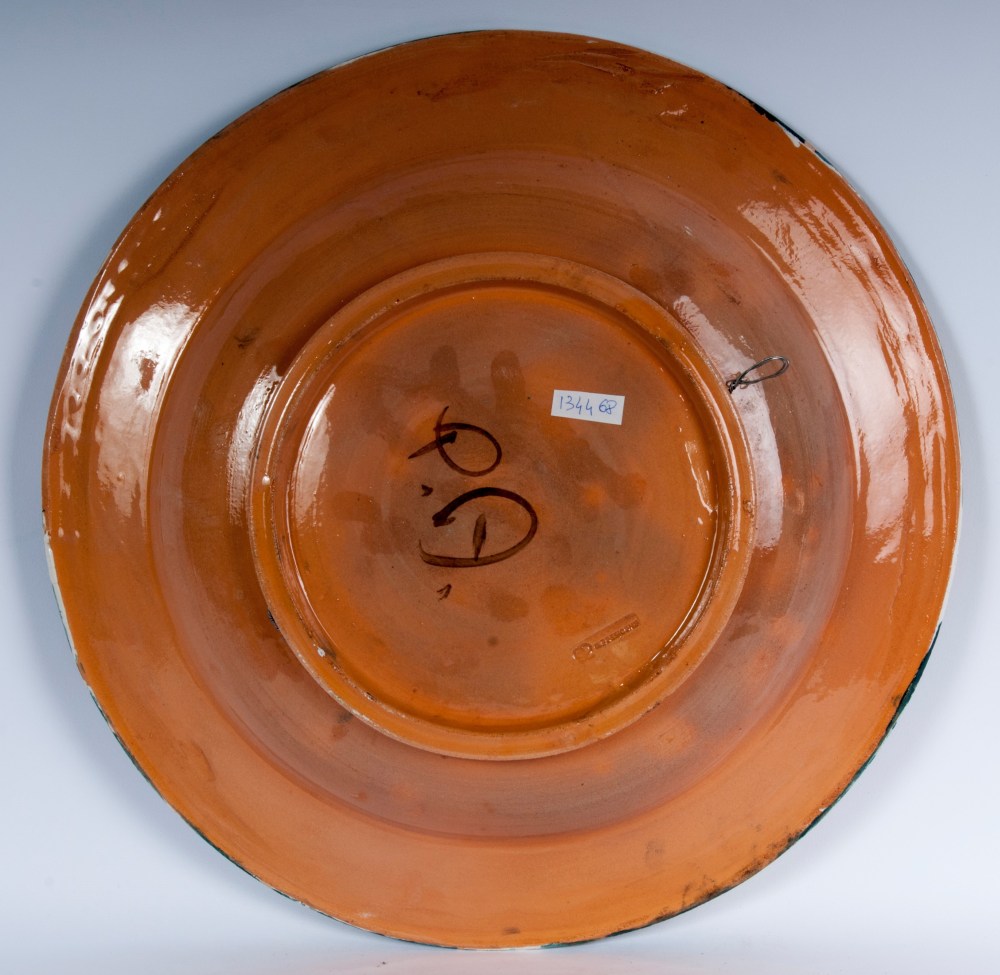Piatto da pompa in ceramica policroma seconda metà XX secolo