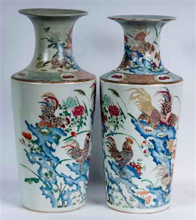 Coppia di vasi in porcellana arte dell'estremo oriente, inizio Repubblica 35 x 12,5 x 11,5 cm