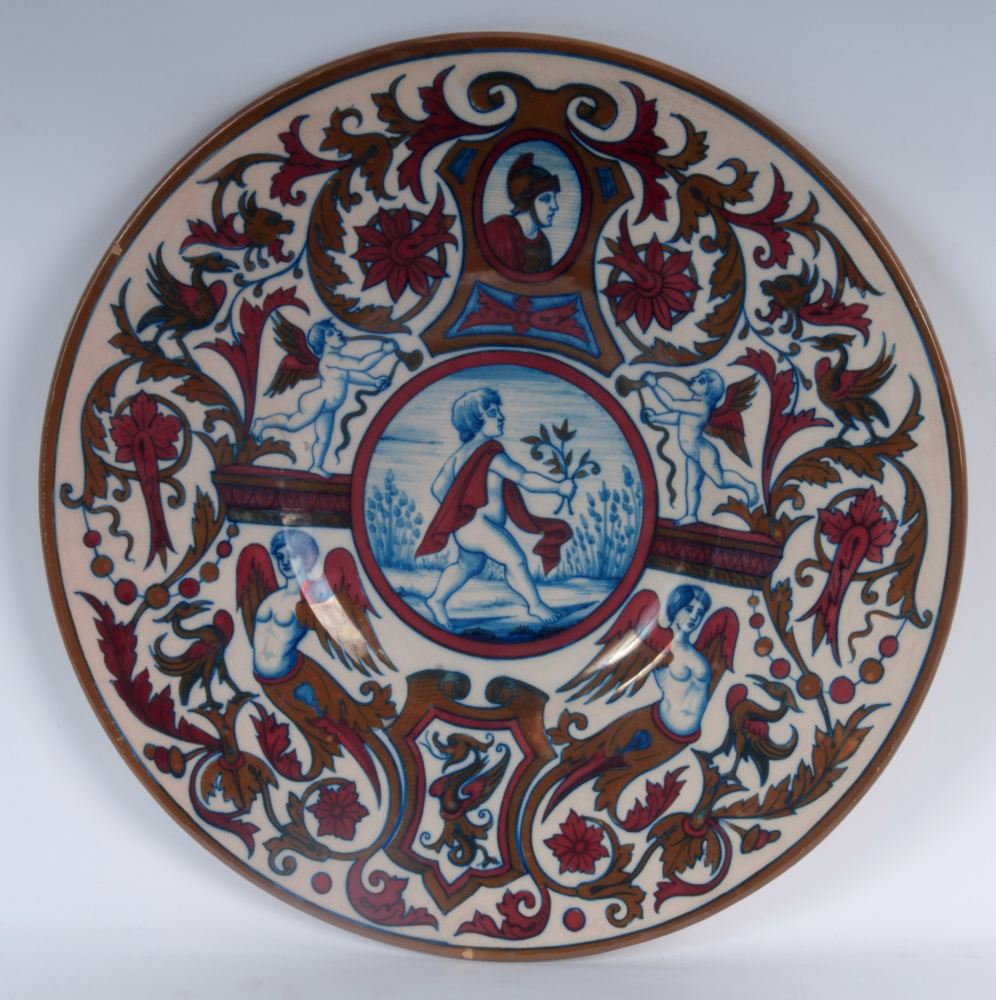 PAOLO RUBBOLI (attribuito a) (1838 - 1890) Piatto da pompa in ceramica policroma ultimo quarto XIX secolo diametro 38,5 x 4,7 cm