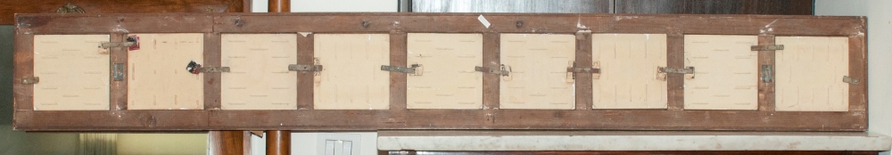 mattonella 20 x20 cm . totale 230 x 31 cm composta da nove mattonelle policrome in cornice, Manifattura fiorentina su mattonella della Cooperativa di Imola.