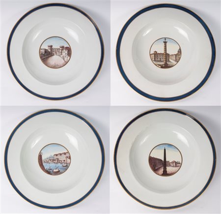 Lotto di quattro scodelle in porcellana. Manifattura Ginori, 1810/1820