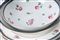 composto da: 44 piatti da coltello diametro 24 mx 2,5 cm; 2 salsiere 14 x 4,5 x 9,5 cm con piattino diametro 19,5 x 2,2 cm; 3 marescialle 25 x 4,5 x 8 cm; 2 cestini 7 x 21,5 x 16,5 cm; 4 vassoi da portata ovali 3 x 27,2 x 21,5; 2 zuppiere 40 x 37 x 30 cm; 2 piatti da portata tondi grandi diametro 37 x 4,7 cm; 3 piatti da portata tondi medi 30,5 x 4 cm; 4 vasche centrotavola tonde 6 x 23 cm; 2 vasche portavivande tonde grandi 6,5 x 27 cm. pz totali 70