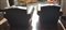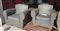 tipo Chester con profilature in pelle blu. Braccioli a colonna con schienale imbottito e cuscino.
