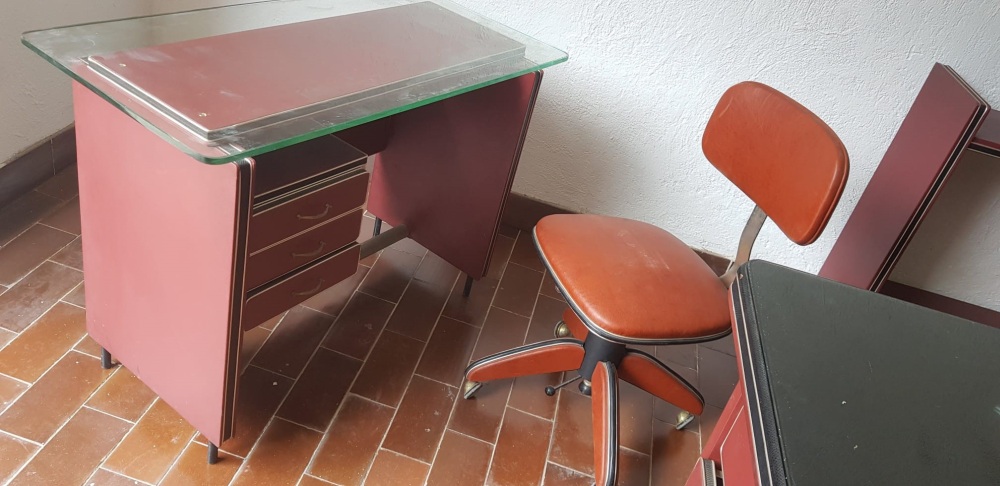 composto da : scrivania dirigenziale ,scrivania di servizio , armadio , due portaschede, una poltrona, tre seggiole.