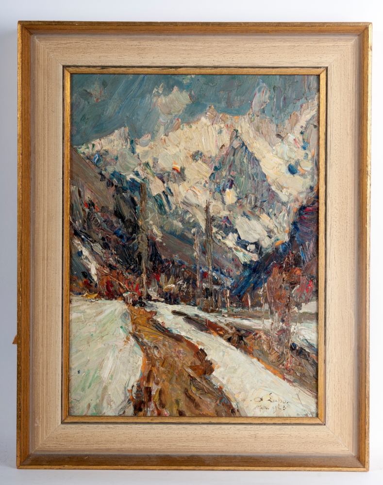 ALESSANDRO LUPO (Torino, 1876 - 1953) Scorcio valdostano 1943 dipinto ad olio su tavola 35 x 25 cm