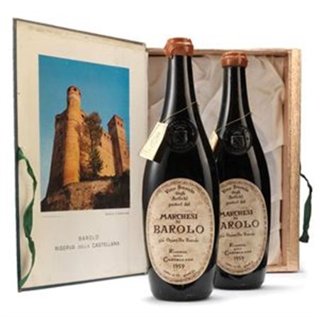 MARCHESI DI BAROLO Lotto di n. 2 bottiglie Barolo, riserva della Castellana 1959 Rosso, lt. 0,75 Confezione commemorativa a libro