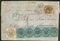 Antichi Stati Italiani - Stato Pontificio - Lettera (4c) + 4 baj + striscia di cinque esemplari del 7 baj azzurro