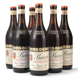GIACOMO BORGOGNO & FIGLI Lotto di n. 6 bottiglie: Barolo Riserva 1971 Rosso,...
