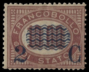 Italia - Regno - 10 cent (36)1878 Regno - Mascherina 2 cent su 10 lire - cert. Raybaudi - (36)