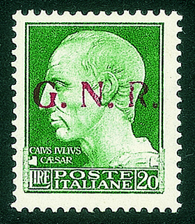 RSI - G.N.R. Brescia - 1943 - 20 lire (487/II)20 lire (487/II) - R difettoso (posiz. 25) - gomma integra - cert. oro Raybaudi