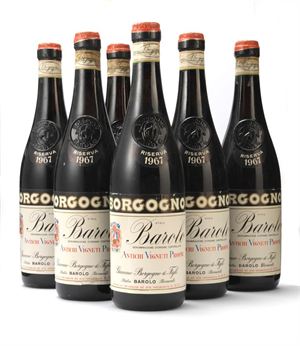 GIACOMO BORGOGNO & FIGLI Lotto di n. 6 bottiglie: Barolo, Riserva 1967 Rosso, lt. 0,75