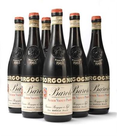 GIACOMO BORGOGNO & FIGLI Lotto di n. 6 bottiglie: Barolo, Riserva 1967 Rosso,...