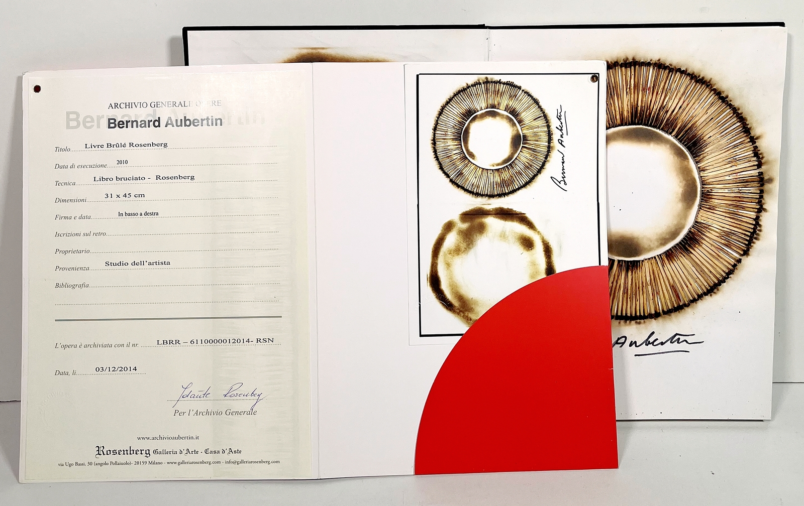 BERNARD AUBERTIN, 31 X 45 cm, ”Livre Brulé Rosenberg", fiammiferi su catalogo,