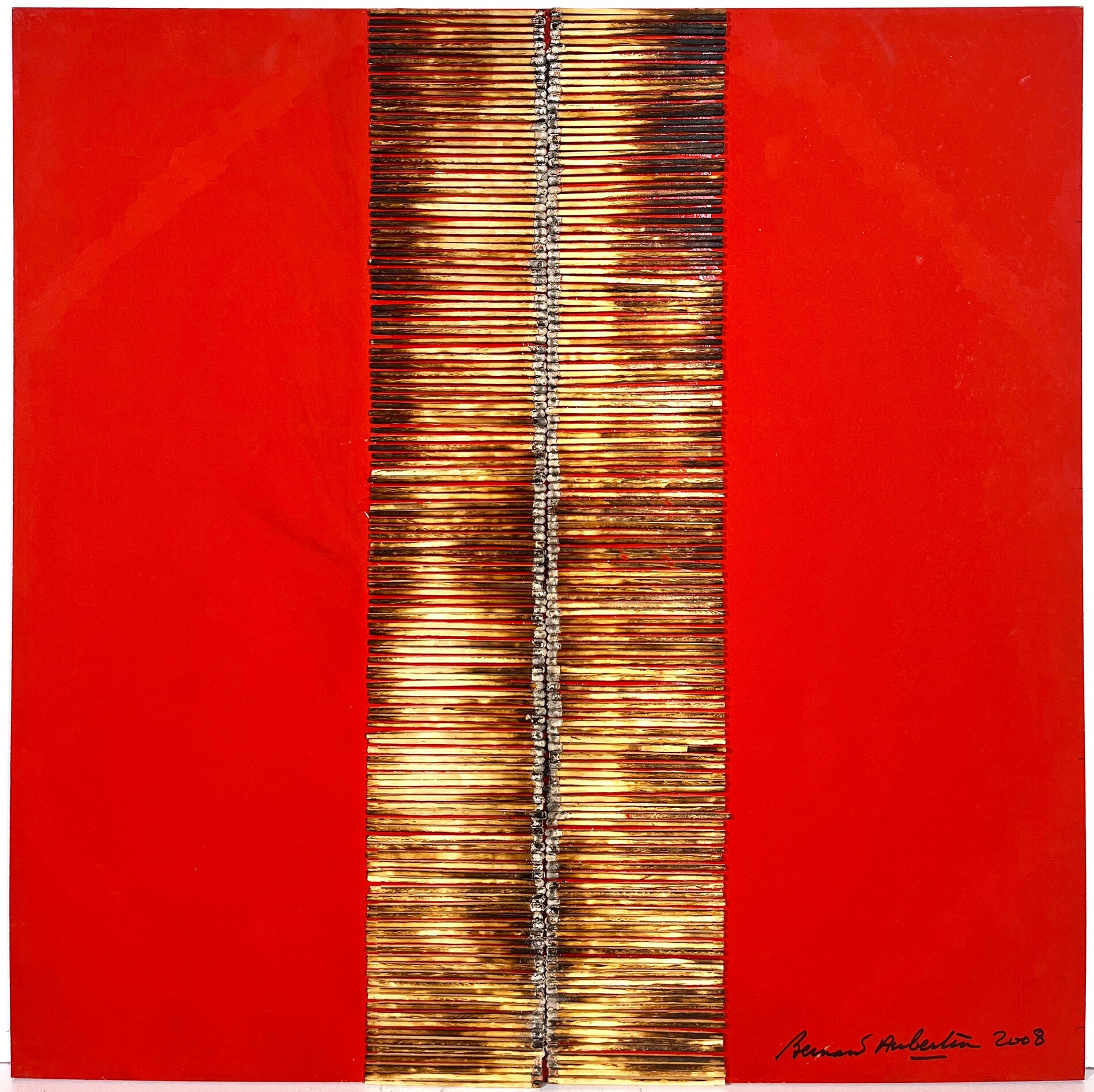 BERNARD AUBERTIN, 60 X 60 cm, Acrilico e fiammiferi bruciati su tavola