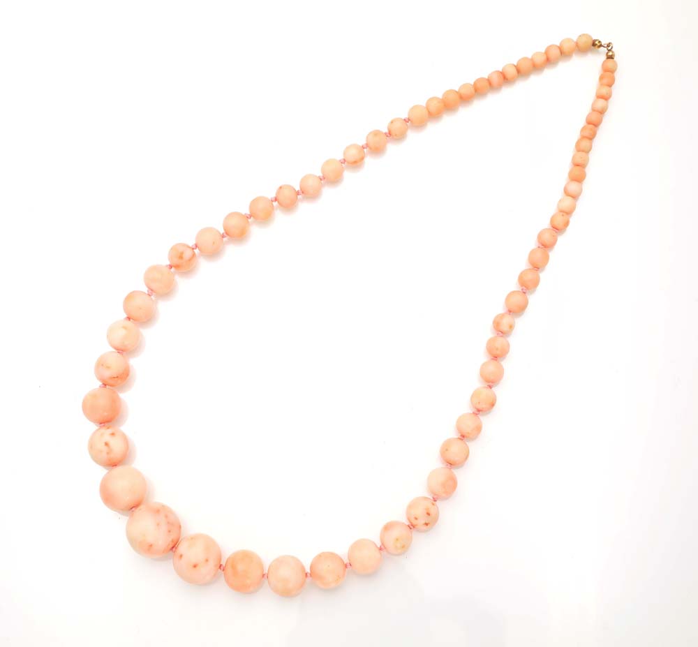 Collana in corallo rosa in taglio sferico Sfere in corallo da mm. 6 a mm. 19. Peso complessivo gr. 84,30