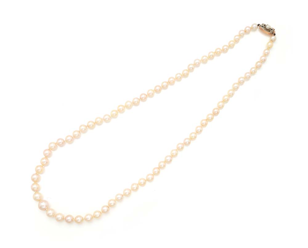 Collana ad un filo di perle ed oro Oro giallo 750/000. Perle diametro da mm 6...