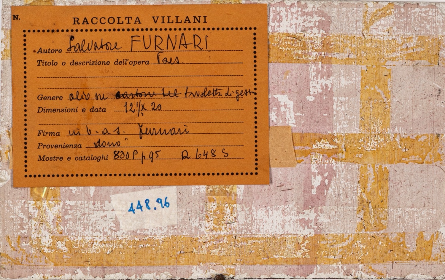 Provenienza: "Raccolta Villani" etichetta al retro con dettagli dell'opera.
