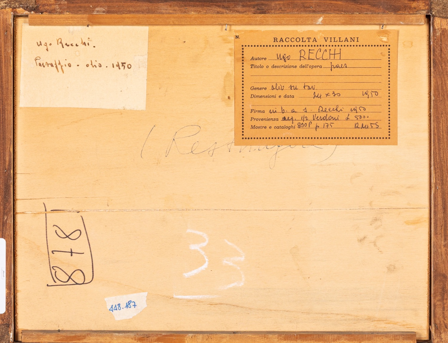 Provenienza: "Raccolta Villani" etichetta al retro con dettagli dell'opera.