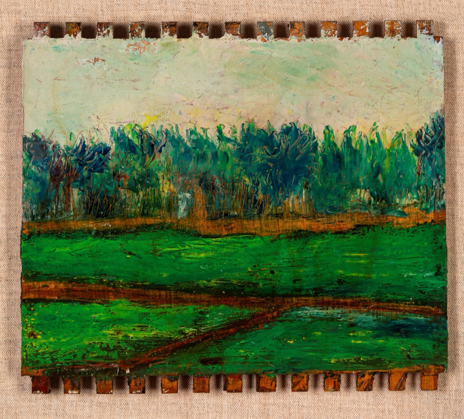 olio su tavola in cassetta