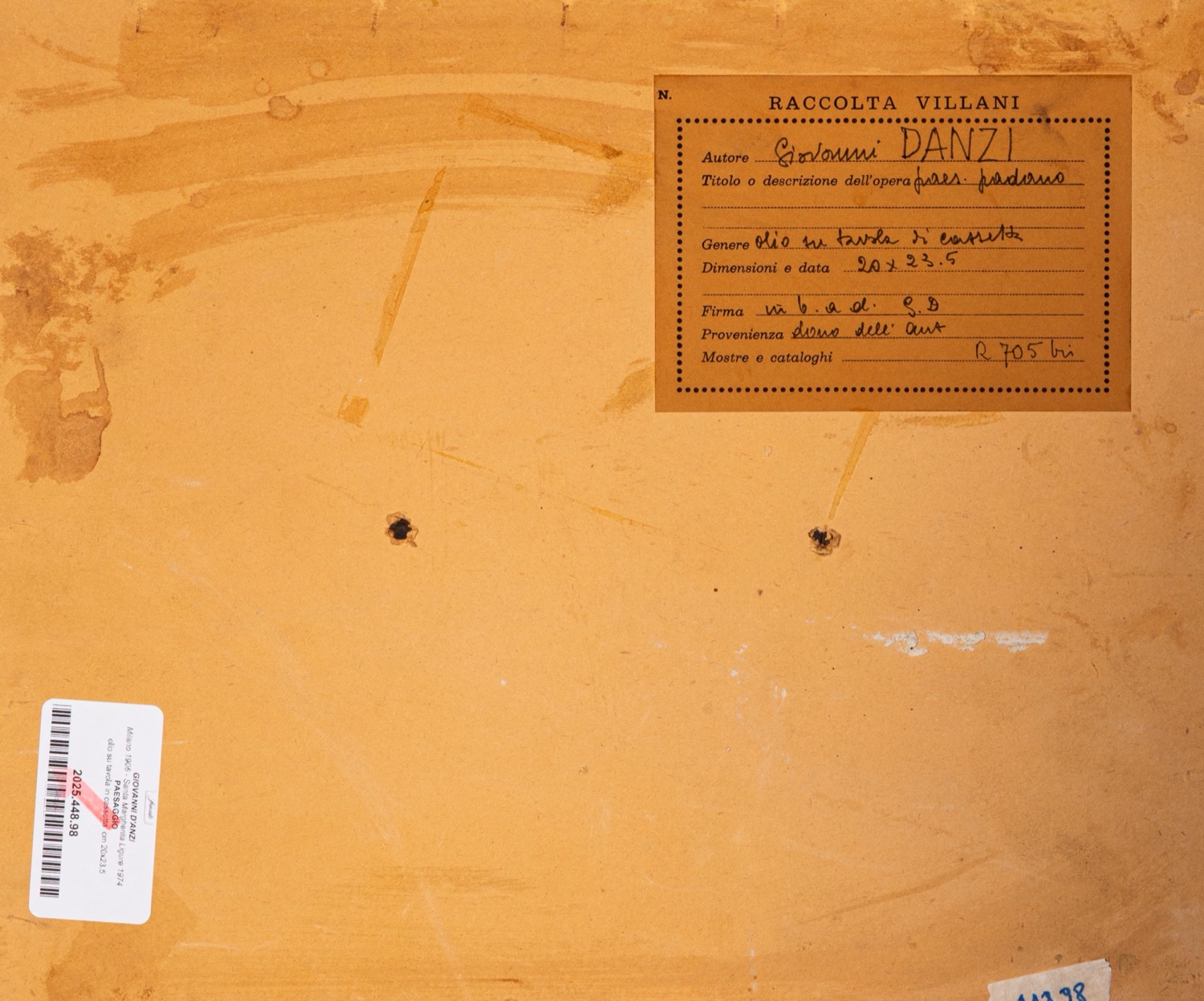 Provenienza: "Raccolta Villani" etichetta al retro con dettagli dell'opera.