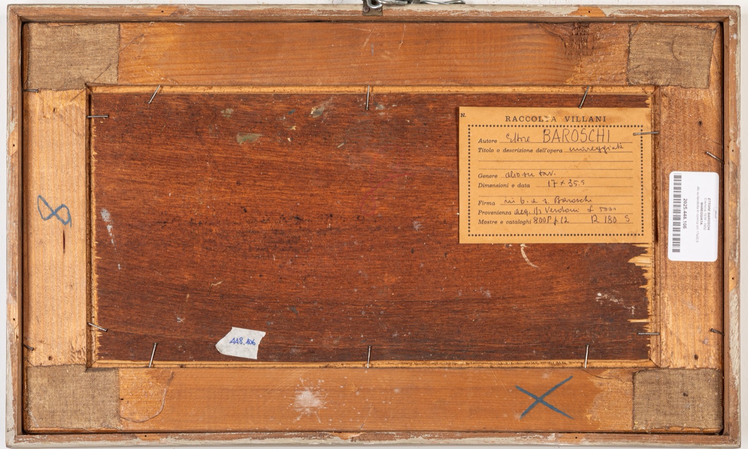 Provenienza: "Raccolta Villani" etichetta al retro con dettagli dell'opera.