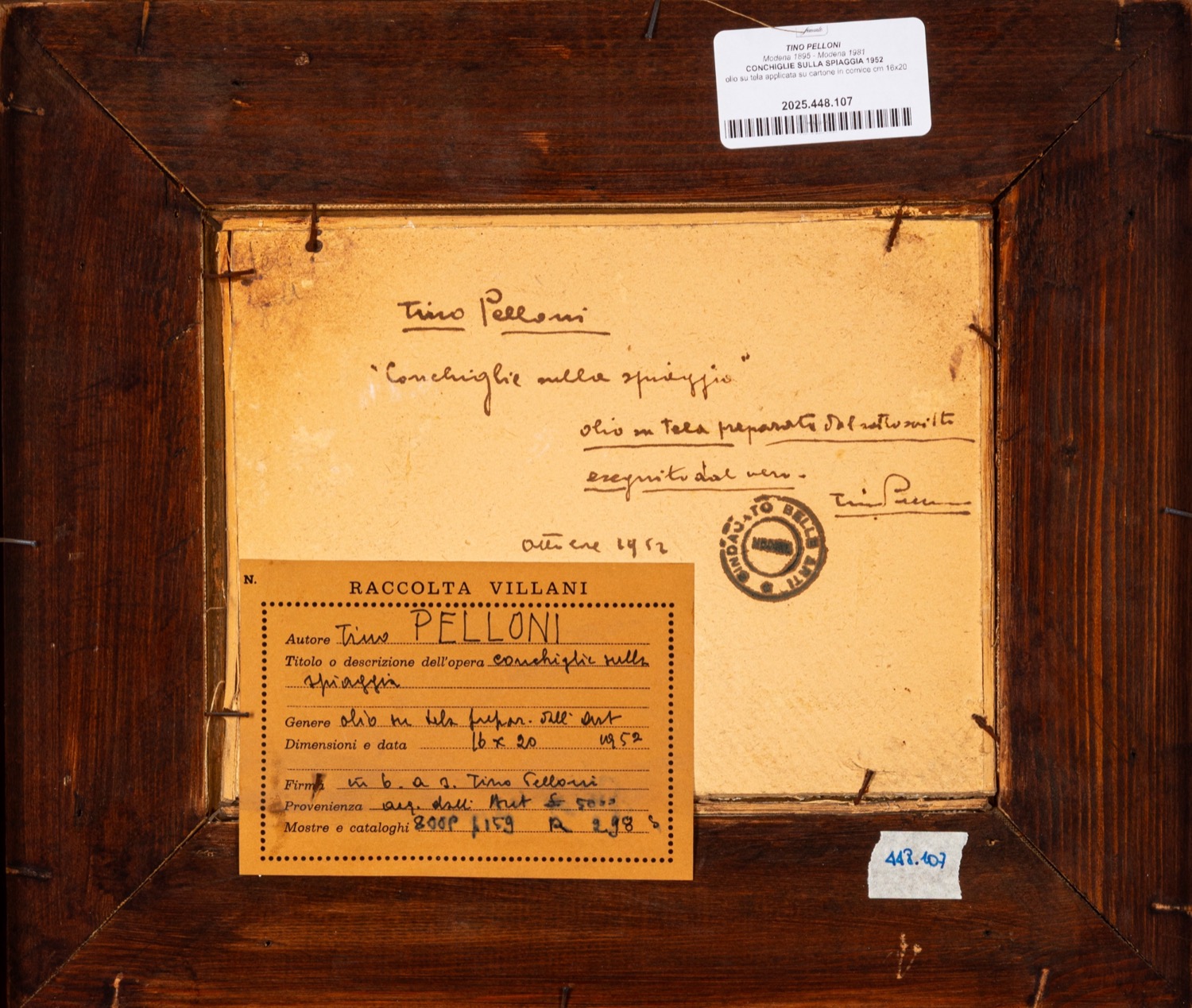 Provenienza: "Raccolta Villani" etichetta al retro con dettagli dell'opera.