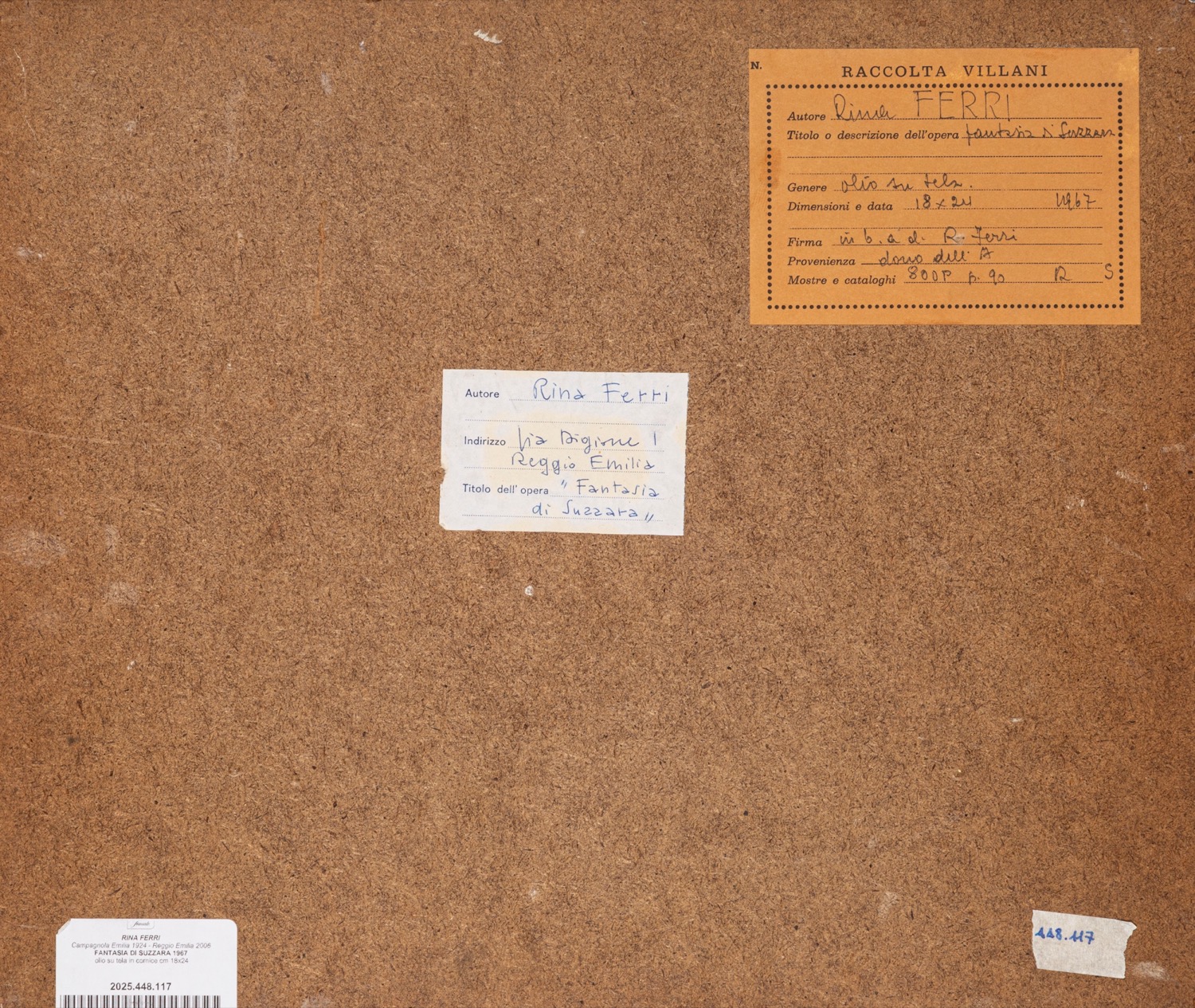 Provenienza: "Raccolta Villani" etichetta al retro con dettagli dell'opera.