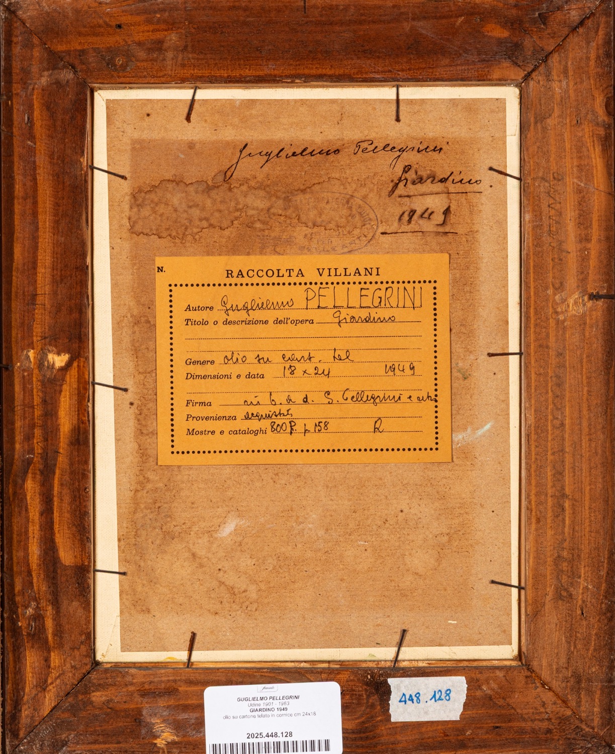 Provenienza: "Raccolta Villani" etichetta al retro con dettagli dell'opera.